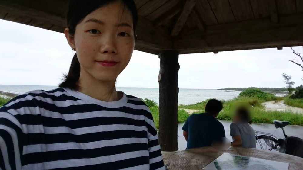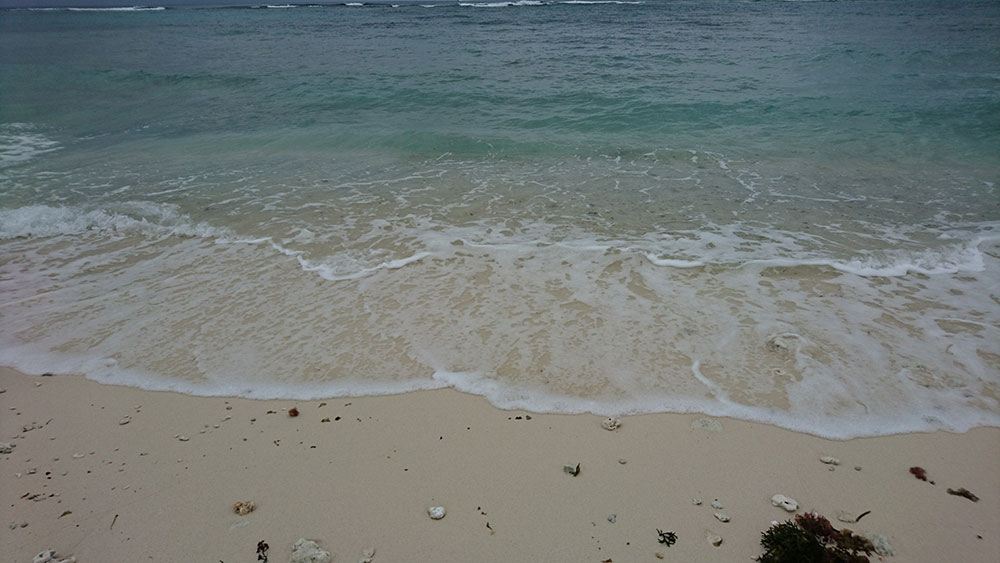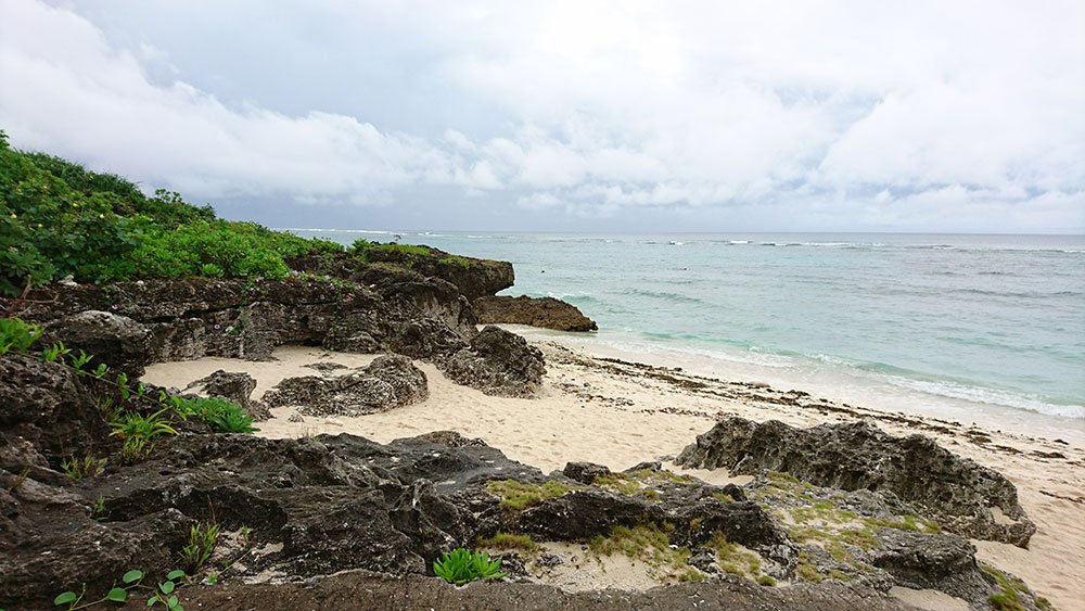 那天騎車過來的路上幾乎沒有人,天氣陰陰的,遊客也不多。直到走到海灘,才看到一對情侶正在浮潛,海浪其實不小,還真有點佩服他們的勇氣。